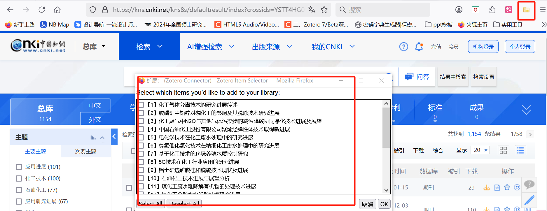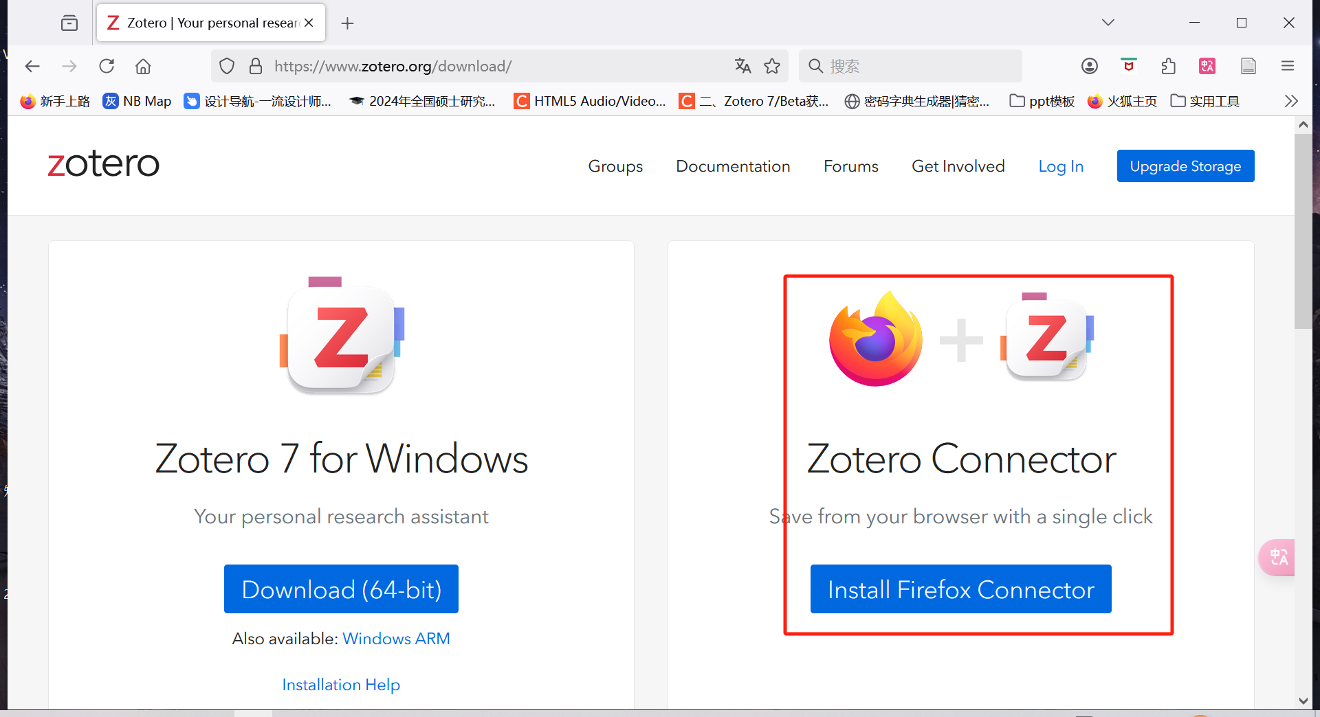 Zotero Connector 插件允许通过单击Firefox、Chrome 、Microsoft edge浏览器中的插件按钮将所选项目添加到 Zotero 软件库中。